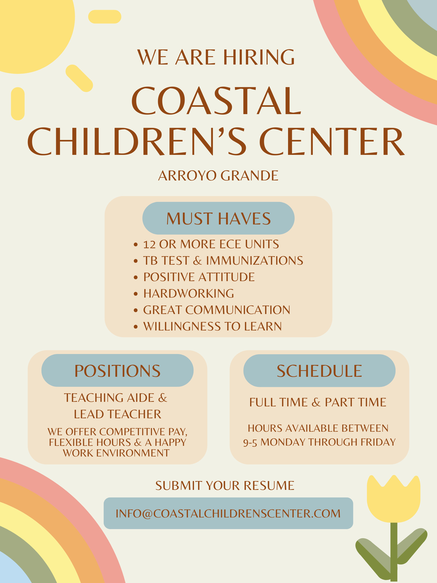 Apply today and become part of our incredible team! We can’t wait to meet you!