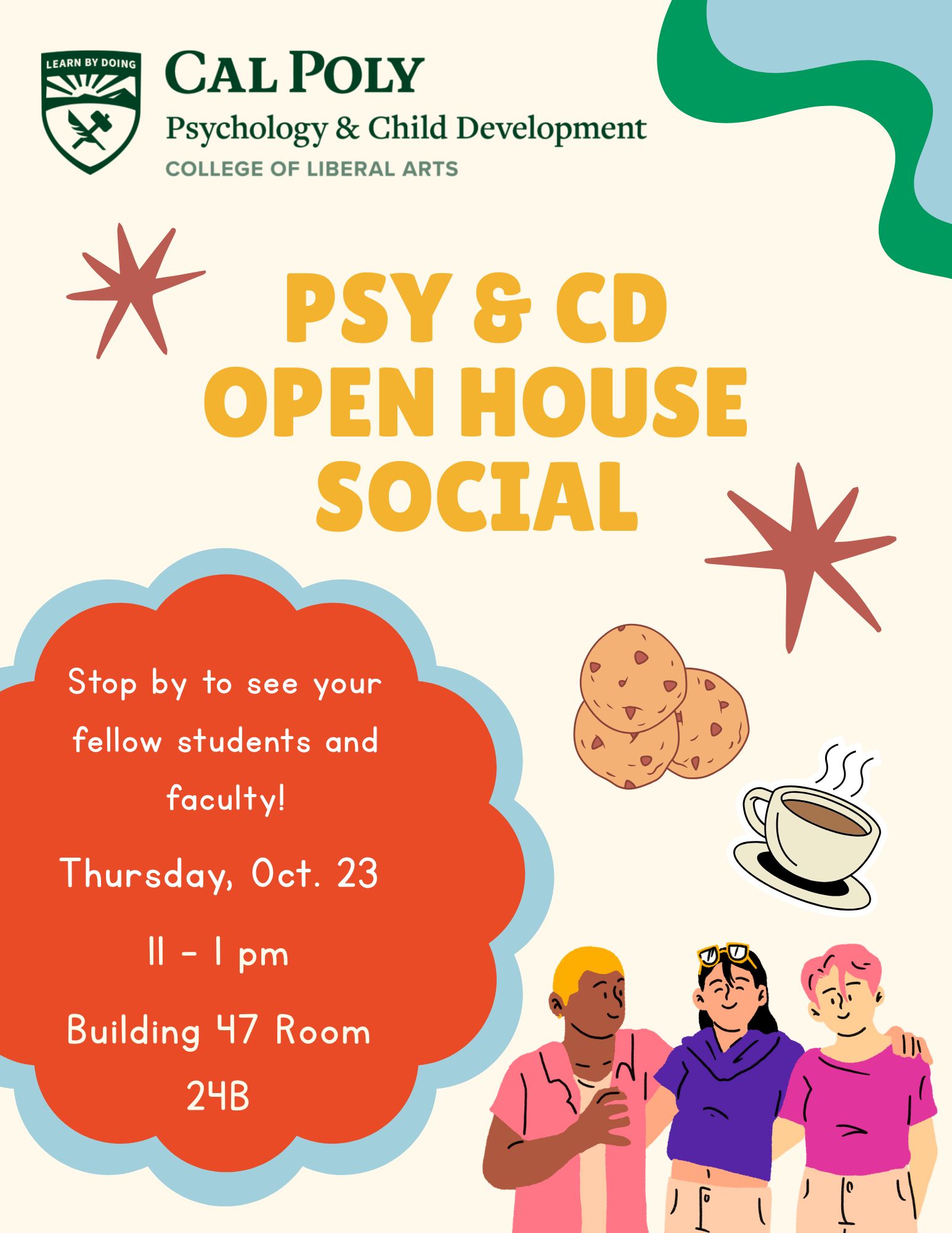 Join the Psychology and Child Development Department for our Open House Social on Thursday, October 23, from 11-1pm. Meet your fellow students and faculty and enjoy cookies, beverages, crafts, and conversation! Located in Building 47 Room 24B, we look forward to seeing you there!
