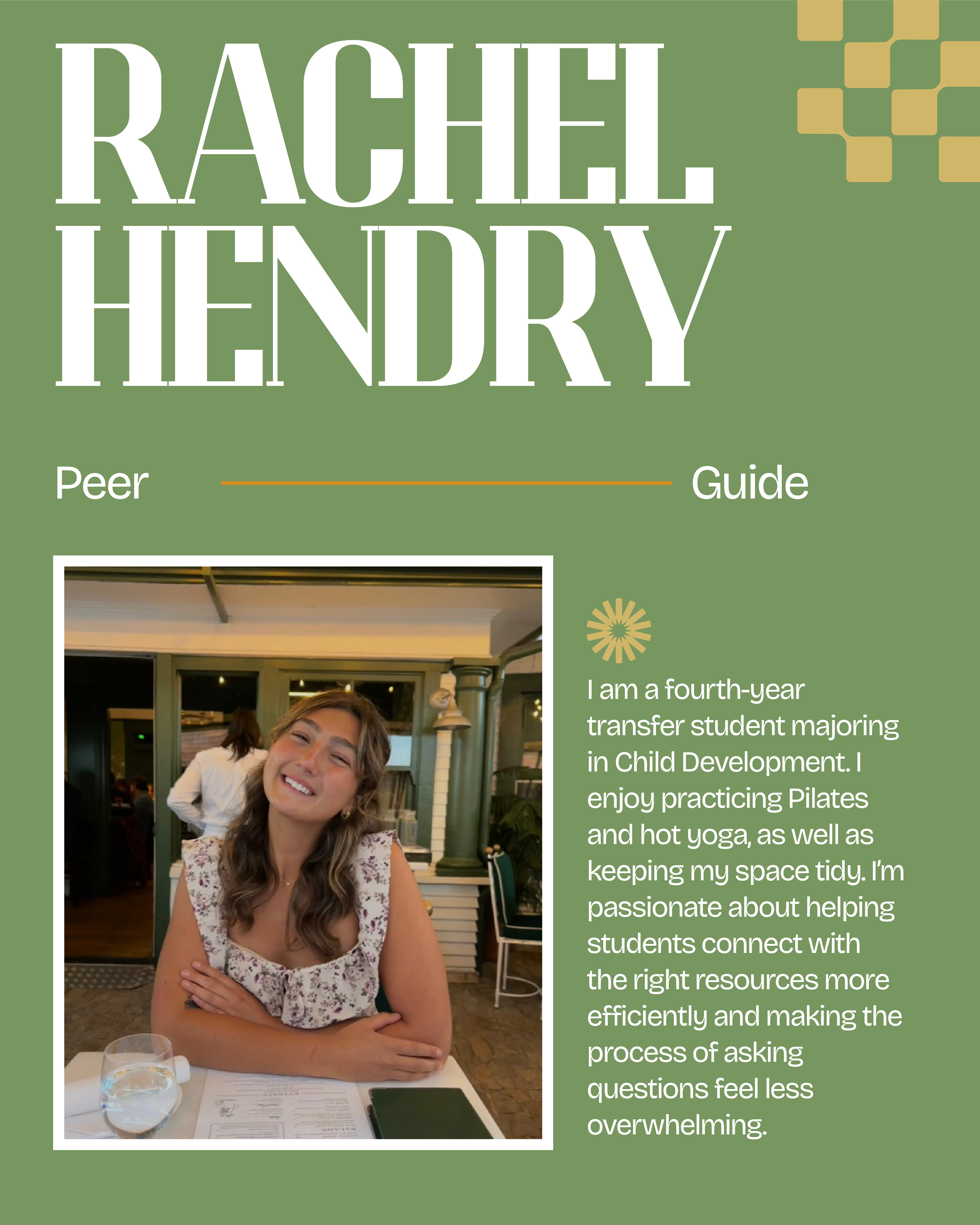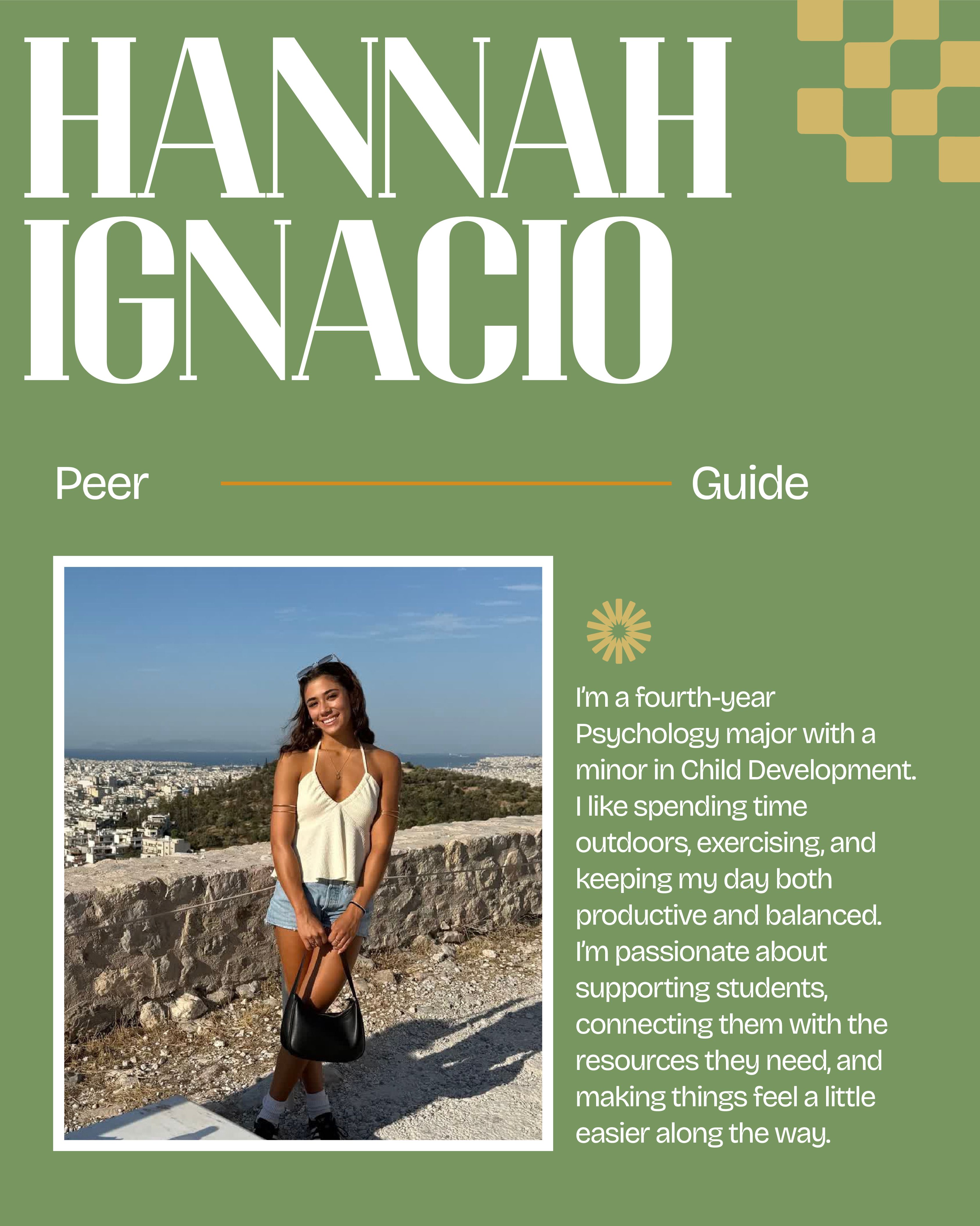 Meet your PSY & CD Peer Guides! For most questions, your first step will be to meet with one of our PSY & CD Peer Guides. They work closely with our Department Chair, Dr. Carrie Langer, to get up-to-date information for students. Our amazing peer guides host weekly Zoom Drop-Ins. View their schedule HERE. Thank you to our PSY & CD Peer Guides for all of your hard work in supporting fellow students!